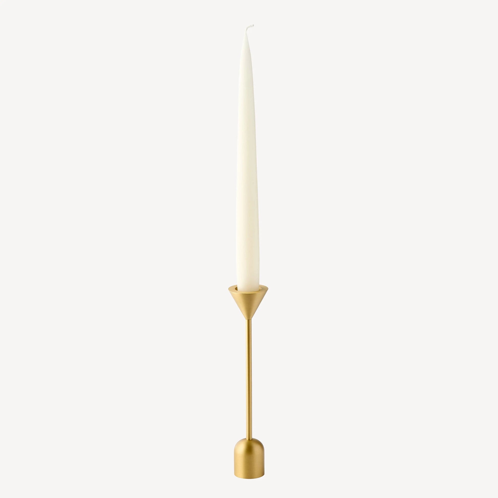 The Candle Flair Reversible Totem Dinner Candle Holder in satin brass is a compact sculptural accent designed for versatile styling. Crafted from solid brass with a reversible design, it offers two candle fits in one elegant form. Ideal for layering across tablescapes or styling smaller spaces.