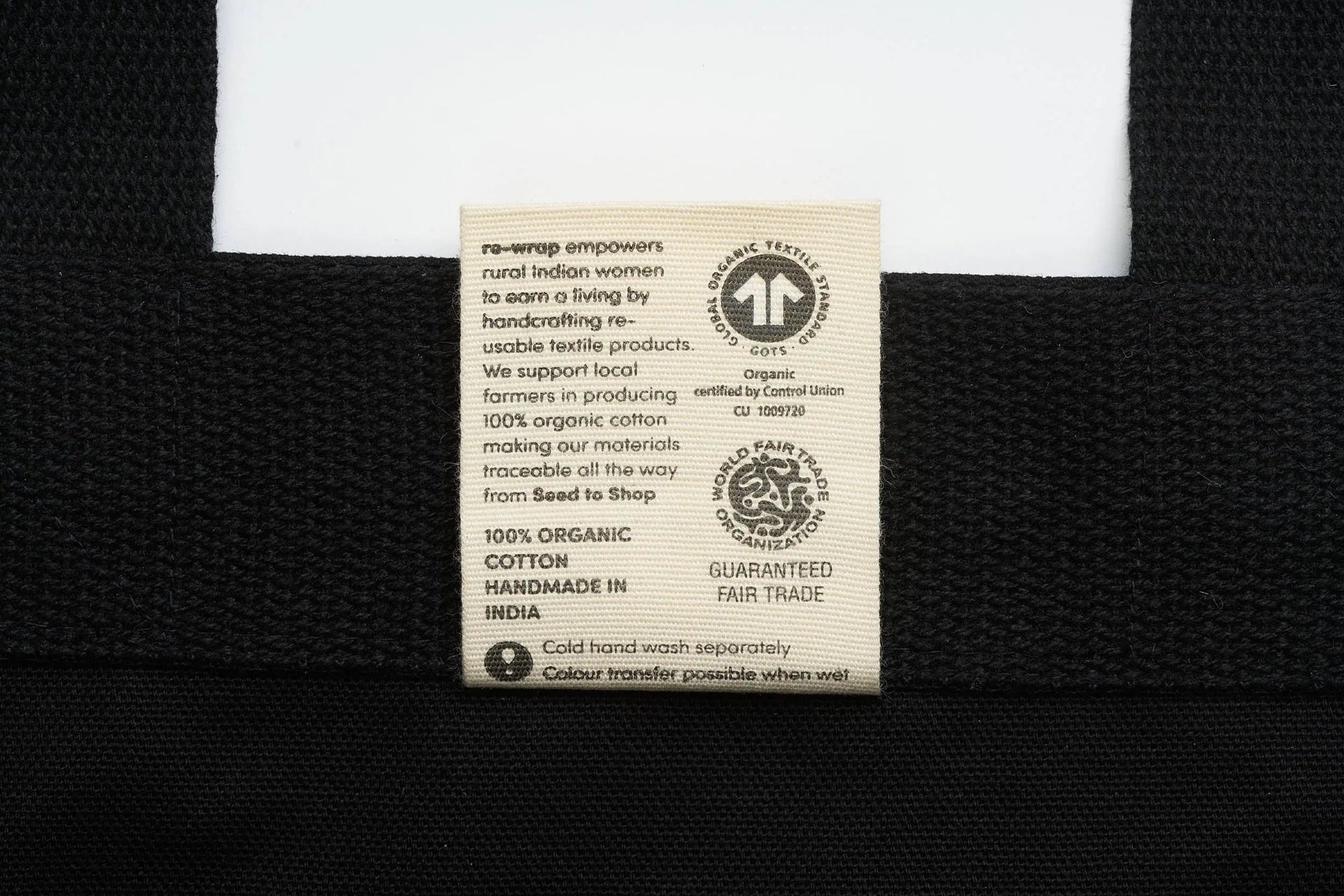 100% organic cotton. Produced by re-wrap, a social enterprise supporting rural Indian women. Cotton sourced from local farmers and fully traceable.